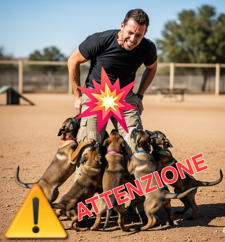 Spesso ci capita di inciampare nella visione di immagini in cui un ( presunto ) allevatore si fa mordere ed appendere ai pantaloni da alcuni cuccioli di Malinois